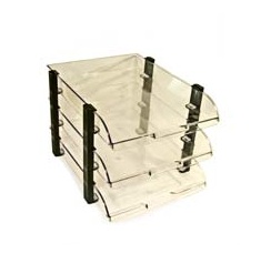 סט 3 מגשים לשולחן המשרד למסמכים וניירת. כל מגש נע על מסילה משלו לשליפה נוחה של המגש הרצוי. המגשים עשויים מפלסטיק שקוף, מגביהים בין מגש למגש להרכבה עצמית.